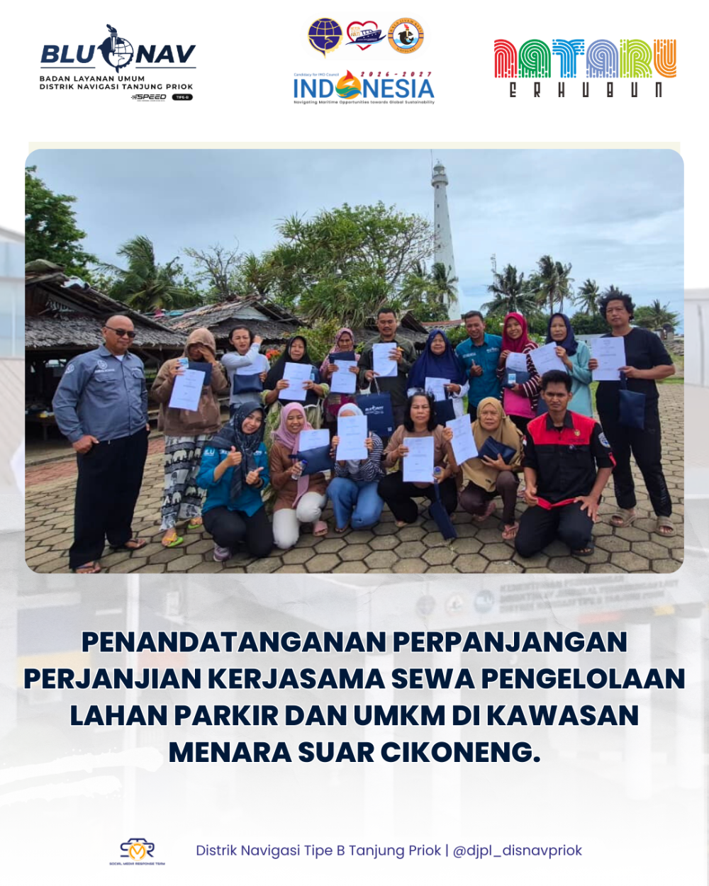 Perpanjangan Kontrak Kerjasama Pengelolaan Lahan Parkir dan UMKM di kawasan Menara Suar Cikoneng.