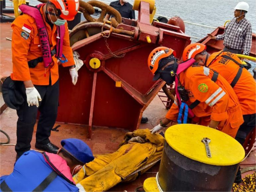 In response to the incident, the ship's agent, together with PT IMPT, immediately evacuated the critically injured victim to a hospital in Banjarmasin for medical treatment. Meanwhile, today, a joint team from KSOP and Basarnas has been dispatched to the anchored vessel to retrieve the deceased crew member, who remains trapped in the anchor house.