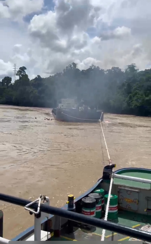 Following the incident, barge BG. JAMBORATA was immediately secured and moored near Kampung Luwe. TB. MIRSHAD then returned to the scene to conduct rescue operations for the passengers.