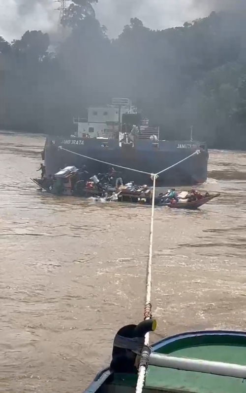 Central Kalimantan, 08 July 2025 — A maritime incident occurred in the Santuyun bend area on Tuesday afternoon at around 12:20 WITA. Tugboat TB. MIRSHAD, which was towing barge BG. JAMBORATA on a voyage from Tuhup to Kelanis, was involved in a collision with a small passenger boat known locally as a julung-julung.