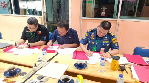 Rabu, 15 Oktober 2025, Kantor Kesyahbandaran dan Otoritas Pelabuhan Kelas I Dumai yang diwakili oleh Kepala Sub Bagian Umum dan Hubungan Masyarakat sekaligus Pelaksana Tugas Kepala Seksi Penjagaan, Patroli dan Penyidikan Sabar Maima Hasugian, S.AP, beserta Staf, melakukan Pendampingan dalam rangka Tindak Lanjut Penilaian Persyaratan Penanggulangan Pencemaran yang dilakukan oleh Direktorat Kesatuan Pengawasan Laut dan Pelayaran di Terminal Khusus PT Semen Padang - Unit Pabrik Dumai.