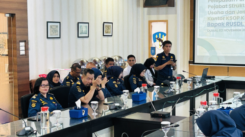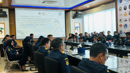 Senin, 3 November 2025, Kantor Kesyahbandaran dan Otoritas Pelabuhan Kelas I Dumai melakukan Kegiatan Pelepasan Purna Bakti Kepala Seksi Bimbingan Usaha Kepelabuhanan Rusdi, S.Sos.,M.MTr di ruang rapat utama lantai 2.