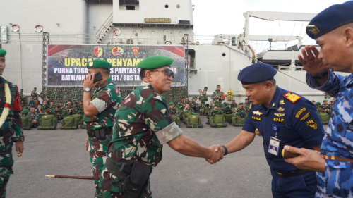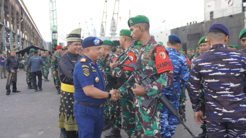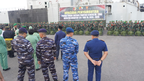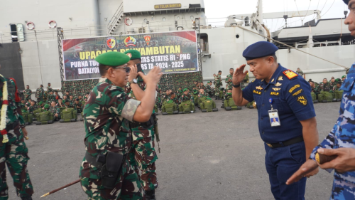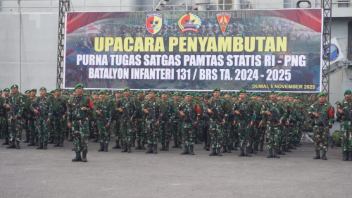 Rabu, 5 November 2025, Rabu, 5 November 2025, Kepala Kantor Kesyahbandaran dan Otoritas Pelabuhan Kelas I Dumai Capt. Diaz Saputra menghadiri Upacara Penyambutan Purna Tugas Satgas Pamtas Statis RI-PNG Batalyon Infanteri 131/Braja Sakti Tahun 2024-2025 di Dermaga Pelabuhan PT Pelabuhan Indonesia (Persero) Regional 1 Dumai. Upacara ini dipimpin oleh Komandan Korem 032/Wirabraja Padang Brigjen TNI Machfud.