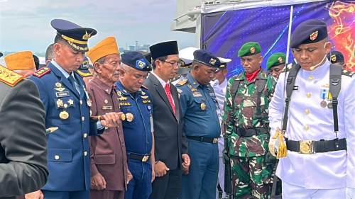 Senin, 10 November 2025, Kepala Kantor Kesyahbandaran dan Otoritas Pelabuhan Kelas I Dumai Capt. Diaz Saputra mengikuti Upacara Tabur Bunga di Laut dalam rangka memperingati Hari Pahlawan Tahun 2025 di Dermaga TNI AL Bangsal Aceh di Kal I-1-/37Tedung.