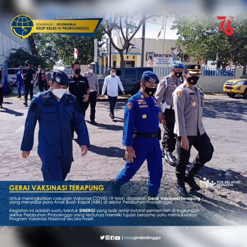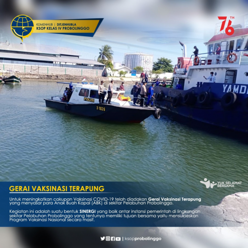 KSOP Kelas IV Probolinggo turut berperan memperlancar proses Kegiatan Gerai ini, yang dimulai dengan melaksanakan Vaksinasi langsung pada ABK Kapal yang bersandar di Pelabuhan Tanjung Tembaga Probolinggo dengan menggunakan KP. X1026 milik Satpolair Polres Probolinggo. Diantaranya TB. Yamdena 02 dan beberapa Kapal Pelayaran Rakyat yang bersandar di Dermaga Pelabuhan.