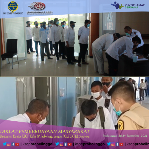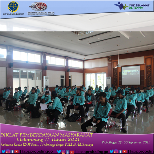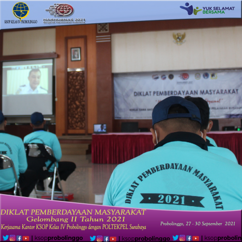 (Probolinggo-27/9) Setelah sukses dengan Diklat Pemberdayaan Masyarakat (DPM) gelombang I, KSOP Kelas IV Probolinggo bekerja sama dengan Politeknik Pelayaran Surabaya kembali mengadakan DPM Gelombang Kedua Tahun 2021 yang dilaksanakan dari tanggal 27 - 30 September 2021.