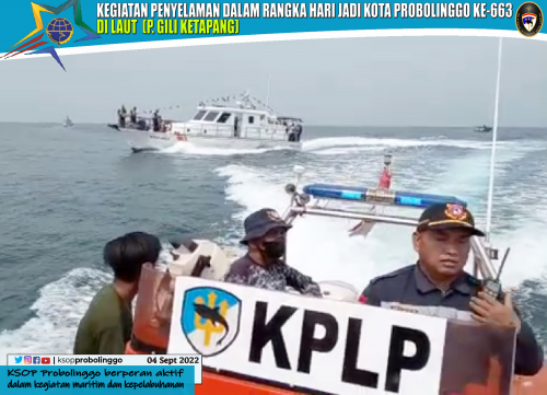 KSOP Kelas IV Probolinggo mengerahkan Kapal Patroli KNP 4001 dan rubber boat untuk memperlancar kegiatan dimaksud, serta personil yang ikut serta dalam penyelaman.