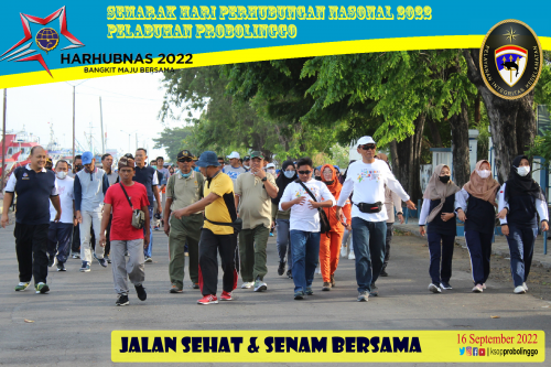 (Probolinggo-16/9) Udara yang masih dingin di Pelabuhan Probolinggo, tidak menyurutkan peserta Jalan Sehat bersama yang dilaksanakan oleh KSOP Kelas IV Probolinggo. Sebanyak 400 orang mengikuti Jalan Sehat dimulai pukul 06.30 WIB start dari depan Kantor KSOP Probolinggo dimana kegiatan ini merupakan rangkaian Hari Perhubungan Nasional 2022 di Pelabuhan Probolinggo.