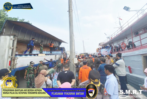 (Probolinggo-4/1) Di awal tahun 2023, Pemerintah Kota Proboliggo beserta Forkopimda melaksanakan kegiatan pengiriman bantuan berupa air bersih dan pemberian pemeriksaan medis gratis kepada masyarakat Pulau Gili Ketapang, yang telah mengalami bencana , terputusnya aliran PDAM ke pulau tersebut karena cuaca buruk akhir ini.