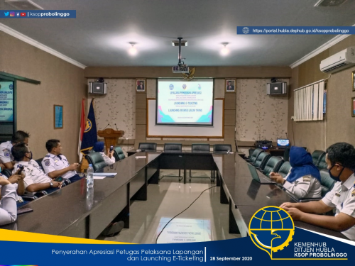 Probolinggo, Senin 28 September 2020 Giat Webinar Penyerahan Apresiasi Petugas Pelaksana Lapangan dan Launching e-Ticketing di Terminal Type A Jatijajar, Depok, Jawa Barat dilaksaknakan oleh Pegawai KSOP Kelas IV Probolinggo. Dalam Acara Giat Webinar tersebut