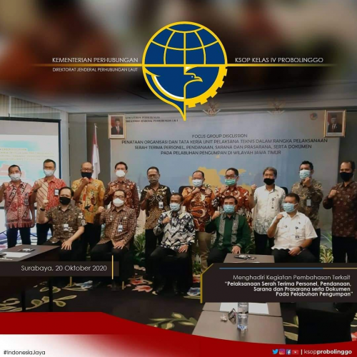menghadiri undangan “Focus Group Discussion” (FGD) Pembahasan Penataan Organisasi dan Tata Kerja Unit Pelaksanan Teknis Sebagai Konsekuensi Pelaksanaan Penyerahan Personel, Pendanaan, Sarana dan Prasarana Dokumen (P3D) pada Pelabuhan Pengumpan di Wilayah Jawa Timur. Dalam rangka menindaklanjuti amanat Pasal 404 Undang – Undang Nomor 23 Tahun 2014 tentang Pemerintahan Daerah. Terdapat 4 (empat) provinsi pilot project program P3D yaitu DKI Jakarta, Jawa Tengah, Jawa Timur dan Sulawesi Selatan. Dalam Rapat tersebut menghasilkan
