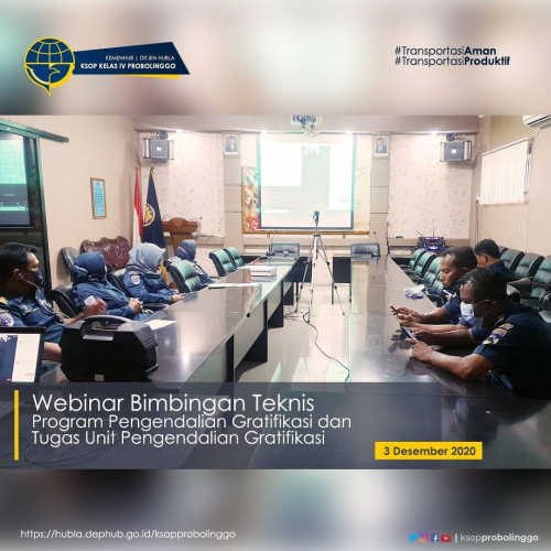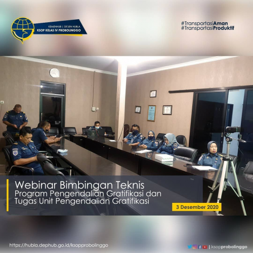 PROBOLINGGO - (4/12) Pelaksanaan Bimbingan Teknis secara online dengan pokok bahasan menyangkut Program Pengendalian Gratifikasi (PPG) dan Tugas Unit Pengendalian Gratifikasi (UPG) di Lingkungan Kementerian Perhubungan.