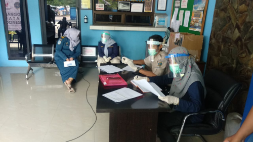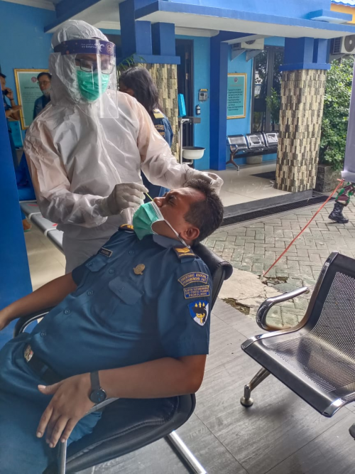 PROBOLINGGO (13/1) – Hari ini Rabu 13 Januari 2021, Kantor Kesyahbandaran dan Otoritas Pelabuhan Kelas IV Probolinggo bekerja sama dengan Kantor Kesehatan Pelabuhan Kelas II Probolinggo menggelar rapid test antigen untuk mengantisipasi penyebaran wabah Virus Corona COVID-19. Rapid test antigen kali ini diikuti oleh seluruh Pegawai ASN baik PNS maupun PPNPN dengan mematuhi protokol kesehatan. Giat rapid antigen kali ini sangat diapresiasi oleh hampir seluruh pegawai Kantor KSOP Kelas IV Probolinggo, dengan adanya rapid antigen untuk memastikan dan mengetahui bahwa diri kita terinfeksi atau tidak dari Virus COVID-19. Harapan dari seluruh ASN KSOP Kelas IV Probolinggo mudah-mudahan dengan kegiatan rapid test antigen ini pandemi COVID-19 bisa segera berakhir terutama di wilayah Probolinggo, disamping itu untuk mempercepat berakhirnya pandemi, para pegawai dan masyarakat harus melakukan gerak bersama minimal dengan berdisiplin mematuhi protokol kesehatan dengan selalu memakai masker, menjaga jarak serta menjaga kesehatan, imunitas tubuh dan kebersihan tubuh. Disamping giat rapid test antigen, giat penyemprotan desinfectan juga dilakukan di seluruh ruangan dan halaman Kantor KSOP Probolinggo.