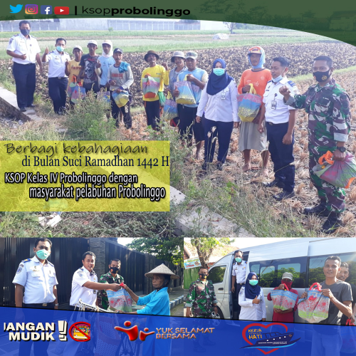 (Probolinggo-10/5) Bulan Suci Ramadhan sudah mendekati akhir. Maka untuk menambah ketaqwaan Insan KSOP Kelas IV Probolinggo melakukan kegiatan Pemberian Sumbangan bagi masyarakat Pelabuhan di Probolinggo pada tanggal 10 Mei 2021.