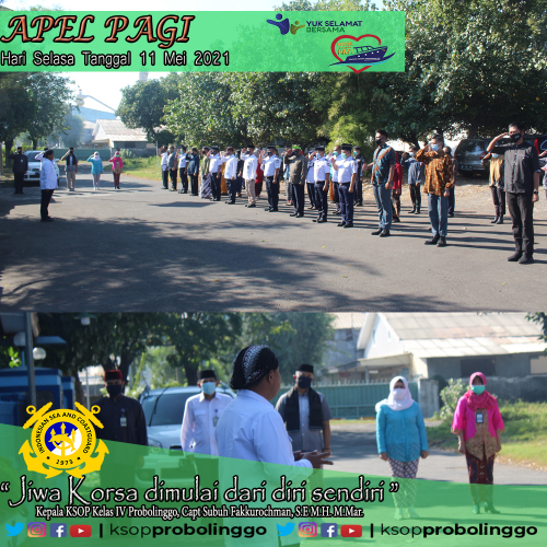 (Probolinggo-11/05) Pagi di depan Kantor KSOP Kelas IV Probolinggo Hari Selasa tanggal 11 Mei 2021 terasa teduh, matahari bersinar namun tidak menyilaukan.