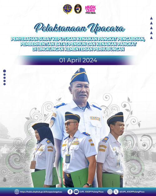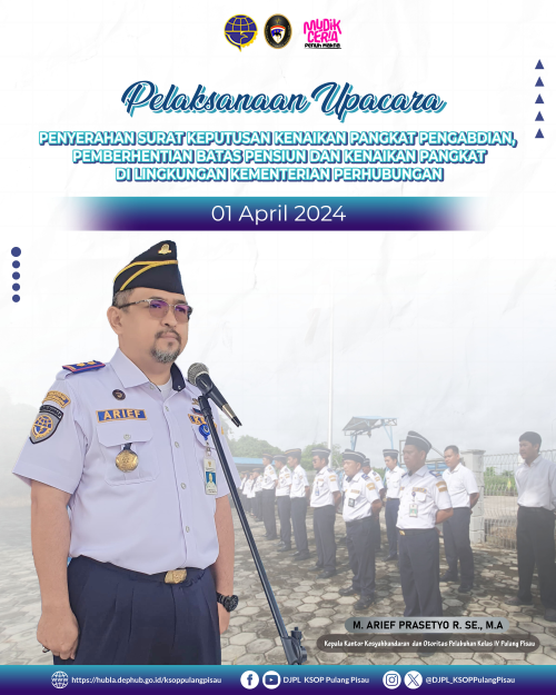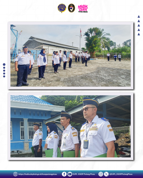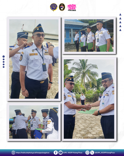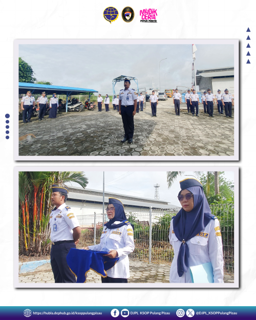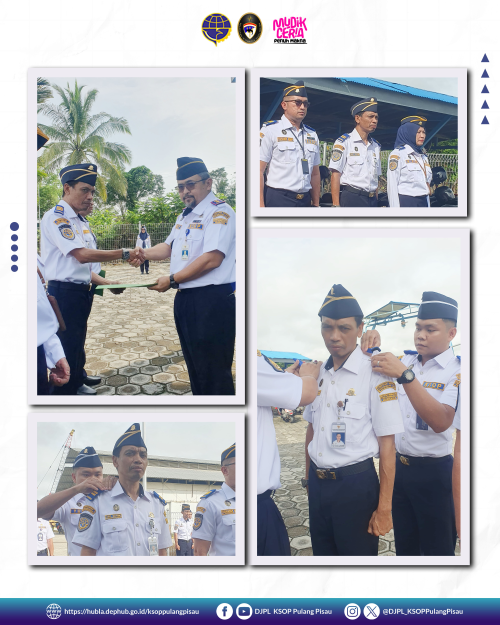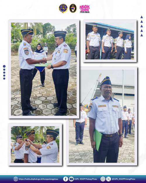 Kantor Kesyahbandaran dan Otoritas Pelabuhan Kelas IV Pulang Pisau melaksanakan Apel Pagi sekaligus Penyematan dan Pemberian SK Kenaikan Pangkat Pengabdian, Pemberhentian Batas Pensiun Kepada :