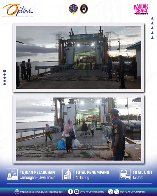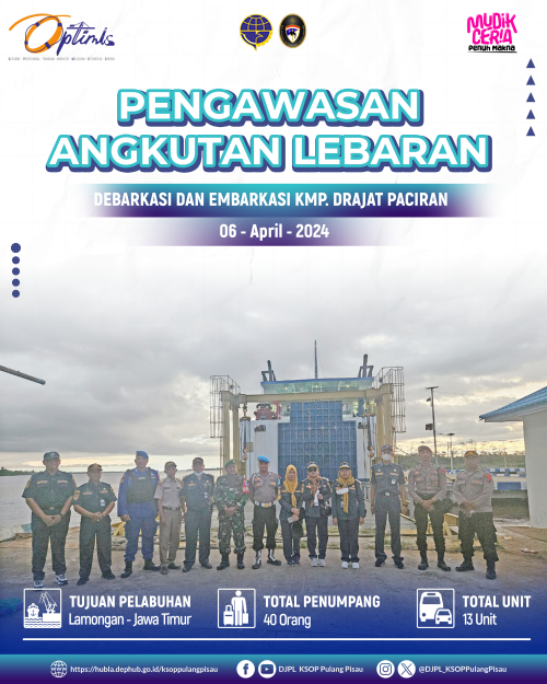 Pada hari Sabtu tanggal 6 April 2024 pukul 17.20 WIB, telah dilaksanakan Monitoring Kedatangan KMP. Drajat Paciran dari : Paciran (Lamongan) - Bahaur (Pulang Pisau) dengan data sbb :