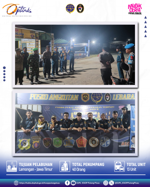 Para Petugas Jaga Posko "Angkutan Lebaran 1445 H" Kantor ijin melaporkan Angkutan Lebaran Kedatangan Kapal KMP. DRAJAT PACIRAN di Pelabuhan Bahaur, Kabupaten Pulang Pisau Provinsi Kalimantan Tengah
