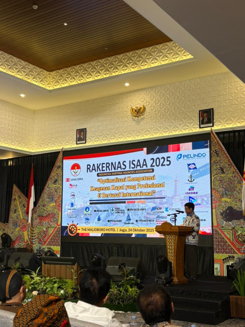 YOGYAKARTA (24/10) - Direktorat Jenderal Perhubungan Laut Kementerian Perhubungan menegaskan komitmennya untuk terus memperkuat tata kelola industri keagenan kapal nasional melalui pembinaan kompetensi, sertifikasi keahlian, dan pengawasan standar pelayanan. Hal ini disampaikan oleh Direktur Jenderal Perhubungan Laut, Muhammad Masyhud saat membuka Rapat Kerja Nasional (Rakernas) Indonesia Shipping Agencies Association (ISAA) di Yogyakarta, Jumat (24/10).