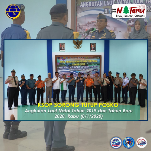 Posko Penyelenggaraan Angkutan Laut Natal Tahun 2019 dan Tahun Baru 2020 (NATARU) yang telah berlangsung dari tanggal 18 Desember 2019 hingga 8 Januari 2020 secara resmi ditutup oleh Kepala KSOP Sorong. Dari data laporan Posko sampai dengan tanggal 7 Januari 2020 jumlah realisasi penumpang naik dan turun pada periode Angkutan Laut Natal 2019 dan Tahun Baru 2020 sebanyak 80.517 orang atau meningkat 12,26% dari tahun lalu.