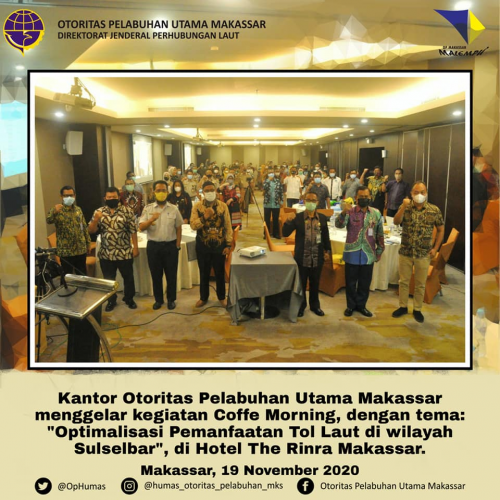 Kantor Otoritas Pelabuhan Utama Makassar menggelar kegiatan Coffe Morning, dengan tema: "Optimalisasi Pemanfaatan Tol Laut di wilayah Sulselbar", di Hotel The Rinra Makassar.
