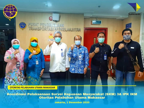 Kantor Otoritas Pelabuhan Utama Makassar melaksanakan Koordinasi dan Konsultasi pelaksanaan Survei Kepuasan Makassar melalui aplikasi 3A IPK-IKM,Kegiatan ini dilaksanakan dalam upaya melaksanakan pengukuran Survei Kepuasan Masyarakat secara komperhesif terhadap kualitas layanan yang diberikan Kantor Otoritas Pelabuhan Utama MakassarTim Otoritas Pelabuhan Utama Makassar diterima oleh Kasubid Tatakelola Kualitas Pelayanan Sarana Prasarana Transportasi Laut dan Udara PPTB, Bapak Dwi Triswanto.