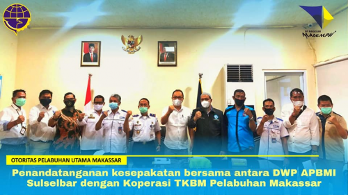 Penandatanganan kesepakatan bersama penyesuaian upah tahunan antara DPW APBMI Sulselbar dengan Koperasi TKBM Pelabuhan Makassar dipimpin oleh Kepala Kantor, Rahmatullah yang didampingi Kepala Bidang Lalu Lintas, Operasi dan Usaha Kepelabuhanan, Sirajuddin.