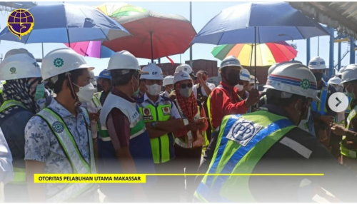 Kepala Kantor Otoritas Pelabuhan Utama Makassar, Bambang Gunawan mendampingi peninjauan Deputi 1 Kantor Staff Presiden (KSP) ke Lokasi Rencana Pembangunan Dermaga Kompensasi MNP di Mako Lantamal VI pada hari Minggu, 30 Mei 2021 melalui laut.