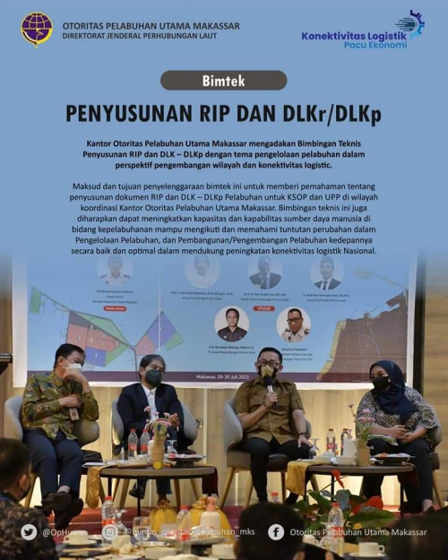 Kantor Otoritas Pelabuhan Utama Makassar mengadakan Bimbingan Teknis Penyusunan RIP dan DLK – DLKp dengan tema pengelolaan pelabuhan dalam perspektif pengembangan wilayah dan konektivitas logistik.