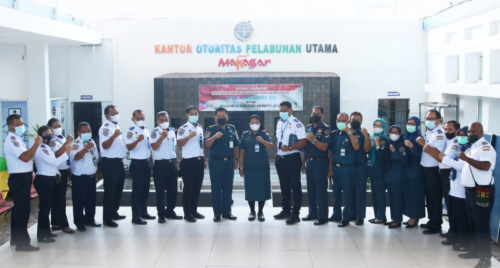 Plt. Kepala Kantor Otoritas Pelabuhan Utama Makassar, Ghoefron Koerniawan beserta jajarannya menerima Kunjungan Studi Banding Kantor Kesyahbandaran dan Otoritas Pelabuhan Kelas I Sorong.