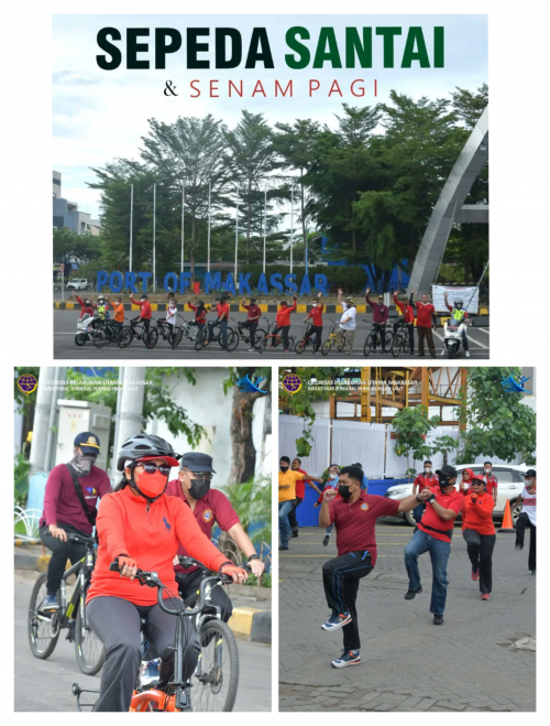 Plt. Kepala Kantor Otoritas Pelabuhan Utama Makassar, Ghoefron Koerniawan didampingi Kepala Bagian Tata Usaha, Adriana M Lambe beserta staf melaksanakan kegiatan bersepeda santai sekitar Pelabuhan Makassar dilanjutkan Senam Pagi Bersama di halaman Kantor Otoritas Pelabuhan Utama Makassar.