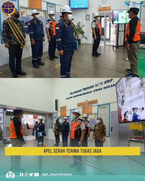 #KawanLaut, Makassar (26/11/21) --- Apel pagi serah terima tugas Perwira Jaga dipimpin Perwira Dinas oleh Kepala Seksi Tertib Berlayar Kantor Kesyahbandaran Utama Makassar, Syaharuddin,SE,SH,MH.