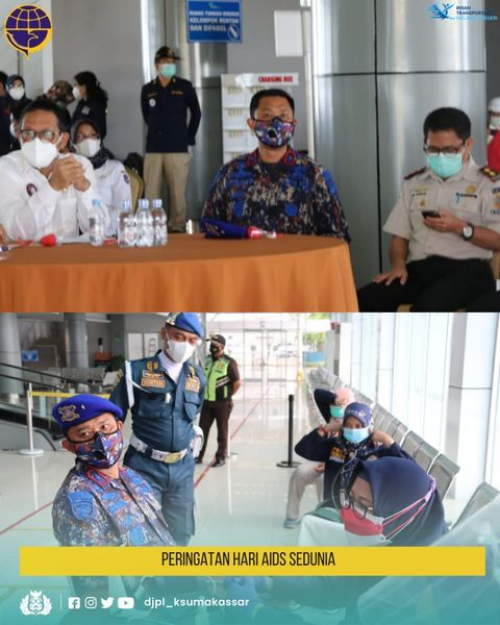 #KawanLaut , Makassar(01/12/21)--Kepala Kantor Kesyahbandaran Utama Makassar Capt.Hermanta,SH,MM,M.Mar membawakan sambutan pada kegiatan Peringatan Hari AIDS Sedunia bertempat di Terminal Penumpang Pelabuhan Makassar, Rabu (01/12/21). Tema peringatan hari aids sedunia tahun ini adalah "Akhiri ketidaksetaraan, akhiri AIDS".
