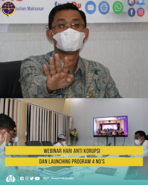 #KawanLaut , Makassar (07/12/2021) --- Kepala Kantor Kesyahbandaran Utama Makassar Capt. Hermanta, SH, MM, M.Mar bersama para pejabat struktural di lingkungan Kantor Kesyahbandaran Utama Makassar mengikuti kegiatan Webinar dalam rangka memperingati hari AntiKorupsi yang dirangkaikan dengan launching program 4 NO's yang digelar oleh Kementerian Perhubungan.