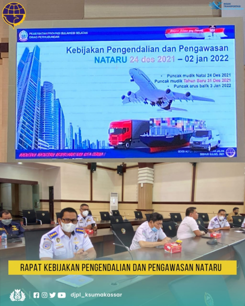 #KawanLaut , Makassar (13/12/21)---Rapat Kebijakan Pengendalian dan Pengawasan Angkutan Natal 2021 dan Tahun Baru 2022 Pemerintah Provinsi Sulawesi Selatan, dihadiri oleh Kepala Bidang Status Hukum dan Sertifikasi Kapal Bapak Sirajuddin S.Sos, MM didampingi Kepala Seksi Status Hukum Kapal Farijs Awwal ST. Rapat membahas lintas sektor dalam rangka persiapan Angkutan Nataru di Kantor Pemerintah Provinsi Sulawesi Selatan.