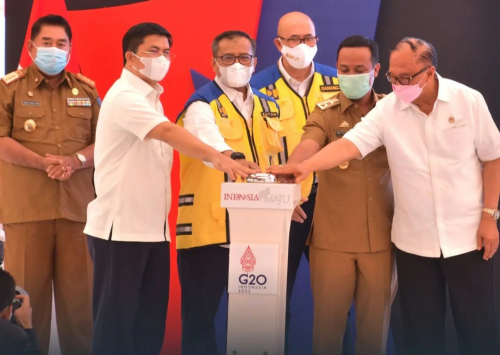 Kepala Kantor Otoritas Pelabuhan Utama Makassar, Muhammad Anto Julianto menghadiri acara Ground Breaking Pembangunan Jalan Akses Tol Makassar New Port (tahap I dan II).