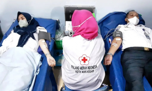 Kantor Otoritas Pelabuhan Utama Makassar kembali melaksanakan kegiatan donor darah rutin bersama Unit Transfusi Darah PMI Kota Makassar Senin, 10 Januari 2022