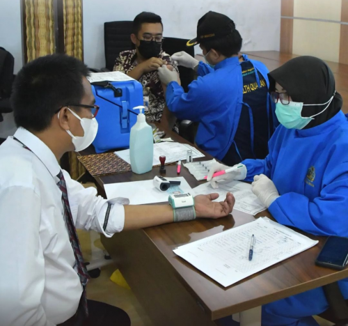 Beberapa tahapan sebelum kegiatan vaksinasi, pertama para pegawai melaksanakan tes swab antigen/PCR untuk memastikan pegawai tidak terpapar Covid 19, kedua screening data, ketiga pemeriksaan tekanan darah selanjutnya suhu tubuh, setelah memastikan kondisi tubuh dalam keadaan sehat, pegawai akan mendapat vaksinasi booster.