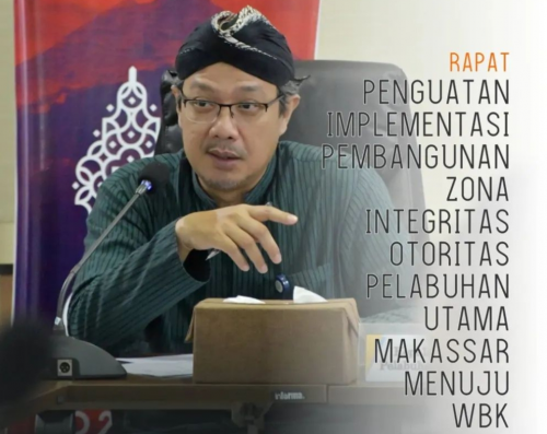 Kepala Kantor Otoritas Pelabuhan Utama Makassar, Muh. Anto Julianto memimpin Rapat Penguatan Pembangunan Zona Integritas OP Makassar menuju predikat Wilayah Bebas dari Korupsi (WBK) pada Selasa, 1 Maret 2022.