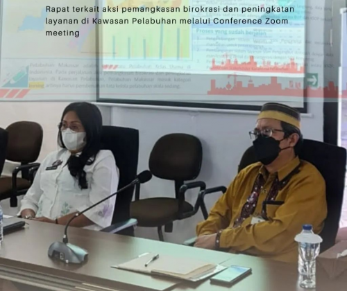 Kepala Kantor Otoritas Pelabuhan Utama Makassar, Muh. Anto Julianto bersama para pejabat struktural mengikuti Rapat Evaluasi 10 Pelabuhan Prioritas Target Aksi Stranas PK Tahun 2021-2022 terkait aksi pemangkasan birokrasi dan peningkatan layanan di Kawasan Pelabuhan, Selasa 8 Maret 2022 secara virtual conference zoom meeting.