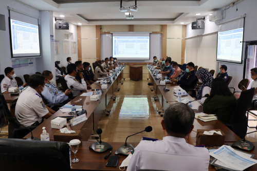 Kepala Kantor Otoritas Pelabuhan Utama Makassar, Muh. Anto Julianto memimpin rapat pembahasan piloting SSm pengangkut dalam rangka implementasi Program Stranas PK, Senin, 21 Maret 2022.