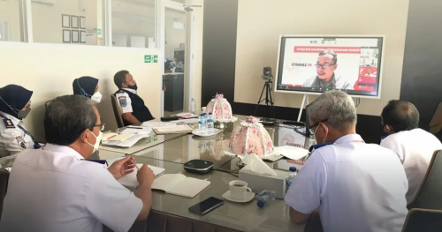 Kepala Kantor Otoritas Pelabuhan Utama Makassar mengikuti kegiatan virtual mengenai Rapat evaluasi capaian aksi dan progress rencana pengukuran dampak implementasi aksi Stranas PK, Senin 1 Agustus 2022