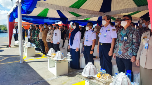 Kepala Kantor Otoritas Pelabuhan Utama Makassar, Muh. Anto Julianto hadir pada kegiatan ekspor komoditas/produk Sulawesi Selatan ke pasar global, Senin, 15 Agustus 2022.