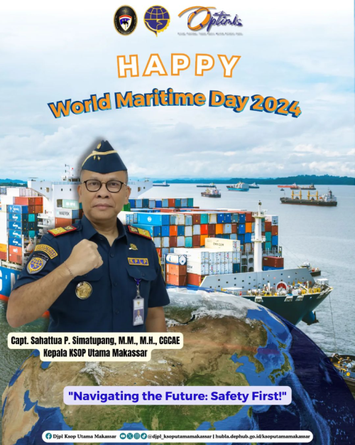 Selamat Hari Maritim Sedunia 2024! Menavigasi Masa Depan: Keselamatan adalah yang Utama! Mari kita bersama menjaga laut tetap aman, selamat dan berkelanjutan, demi masa depan generasi penerus.