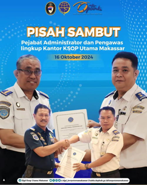 Kepada pejabat yang baru, Bapak Libertinus T. Tampubolon dan Bapak Bahar, Kepala Kantor menyambut dengan hangat dan berharap agar mereka dapat melanjutkan serta memperkuat kinerja yang telah berjalan dengan baik. "Mari kita bersama-sama melanjutkan tugas dan tanggung jawab ini dengan semangat profesionalisme, demi peningkatan keselamatan, keamanan, serta kelancaran transportasi laut dan pelabuhan di wilayah kerja KSOP Utama Makassar," ujar Capt. Sahattua.