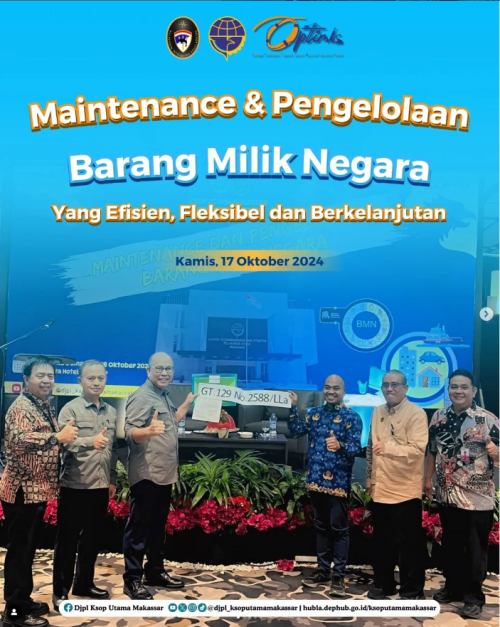 Pada Kegiatan maintanence dan pengelolaan Barang Milik Negara menghadirkan narasumber dari Kanwil DJKN Sulsel, Tenggara dan Barat Bapak Abdul Wahab, dan diikuti oleh Pegawai KSOP Makassar dan Unit Pelaksana Teknis Direktorat Jenderal Perhubungan Laut wilayah Sulawesi Selatan yang dilaksanakan di Hotel Rinra Jl. Metro Tanjung Bunga Makassar, Kamis 17 Oktober 2024.