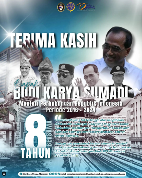 Keluarga Besar Kantor Kesyahbandaran dan Otoritas Pelabuhan Utama Makassar mengucapkan Terima Kasih sedalam-dalamnya kepada Bapak Budi Karya Sumadi atas dedikasi dan kontribusi beliau selama 8 tahun yang luar biasa dalam memajukan Indonesia melalui kinerja yang sangat membanggakan dalam Kabinet Indonesia Maju.