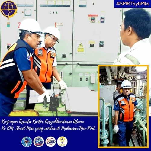 Kunjungan Kepala Kantor Kesyahbandaran Utama Makassar Bpk. Ahmad Wahid, ST, MT, M. Mar. E di ke KM. Strait Mas yang sandar di Makassar New Port.