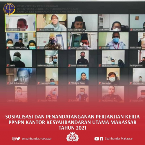 Kantor Kesyahbandaran Utama Makassar melaksanakan acara Sosialisasi dan Penandatanganan Perjanjian Kerja PPNPN tahun 2021.