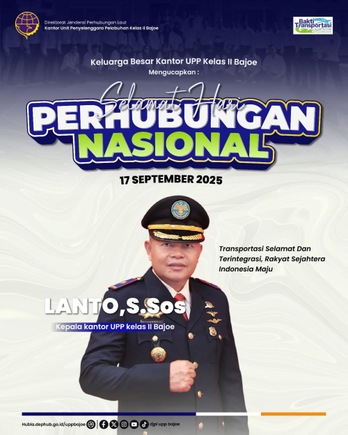 Dengan semangat " Bakti Transportasi Untuk Negeri ", mari kita bersama-sama mewujudkan transportasi yang selamat, aman, nyaman, modern dan berkelan